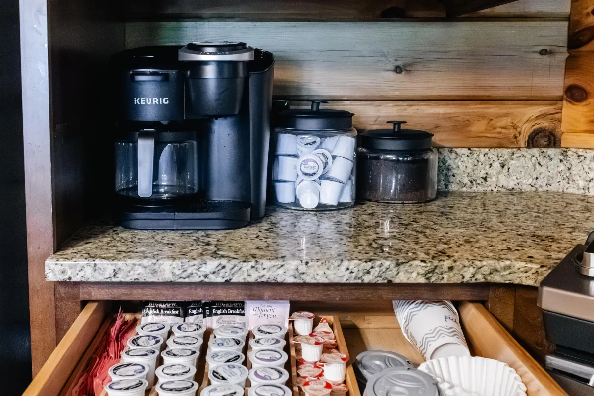 Whether you prefer a bold roast or something light and smooth, you can enjoy a fresh cup in minutes before heading out to explore or relaxing on the porch with mountain views.